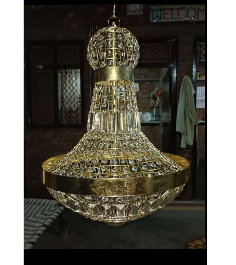 Transform your wedding stage into a royal masterpiece with this luxurious hanging Jhumar. Designed with sparkling crystal and acrylic elements, it reflects light beautifully to create a grand, elegant ambiance. Ideal for wedding stages, reception halls, and event décor, this jhumar adds sophistication and charm to every occasion.